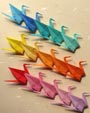 普通紙折鶴 神前結婚式での折鶴シャワーに大変ご好評を頂いております。 又、ベットメーキング等の完了の印に、箸置きに。 輸出用の商品のアクセサリーとして。 「和」の象徴として海外でもご利用いただいております。 |